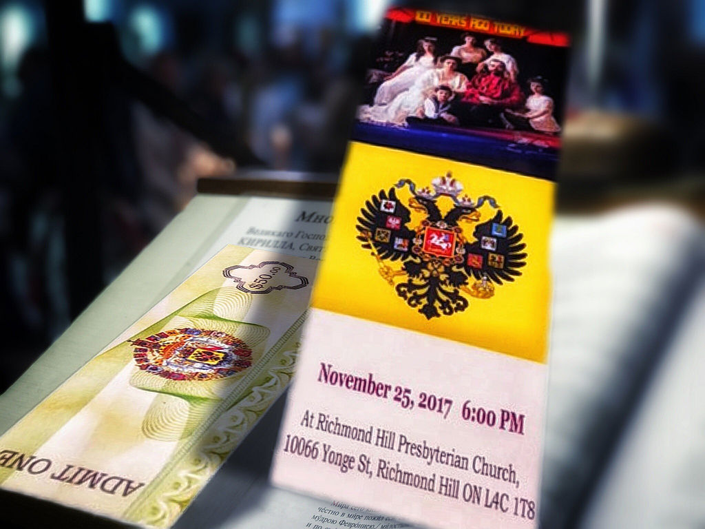 В г. Торонто состоялся благотворительный концерт «100 Лет Тому Назад», посвящённый памяти Святых Царственных страстотерпцев. В концерте приняли участие известные в России, Канаде, Мексике, Италии и США оперные певцы: Лариса Скринская, Цезарь Белло, Эрнесто Рамирес, Сергей Марценюк, концертмейстер Вильям Шухофф, а так же многократный победитель международных конкурсов баянист Александр Севастьян. Концерт открыло исполнение государственного гимна Российской Империи с 1833 по 1917 год «Боже, Царя Храни». Были зачитаны некоторые письма и дневниковые записи Царя Николая и Царицы Александры.