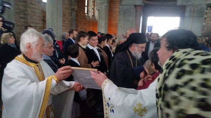Током торжествене Литургије владика Василије одликовао је чином протопрезвитера старешину храма Ђорђа Марића и изразио му захвалност на труду у изградњи величанственог храма Светог кнеза Лазара.
