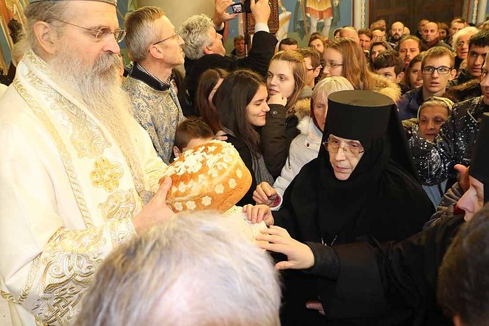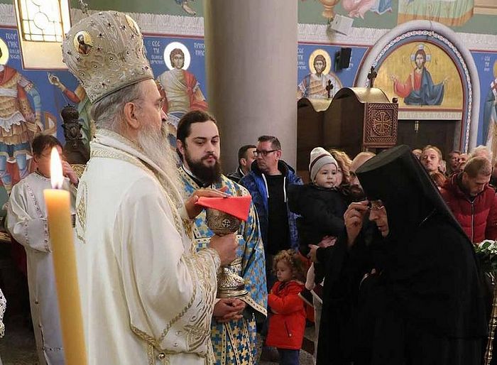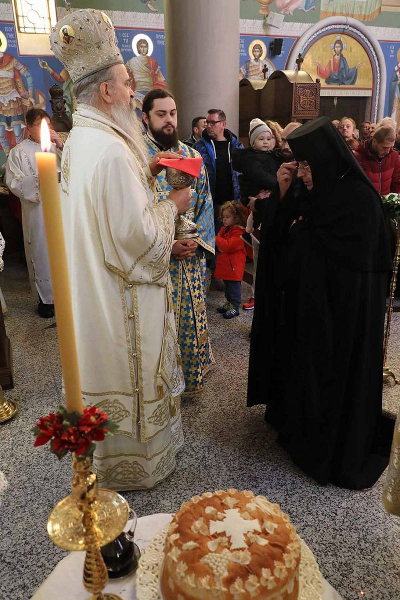 Епископ Теодосије се обратио часном сестринству манастира и верницима истичући чудесни тренутак који се десио 1999. године у манастиру Дечани пред иконом Пресвете Богородице.