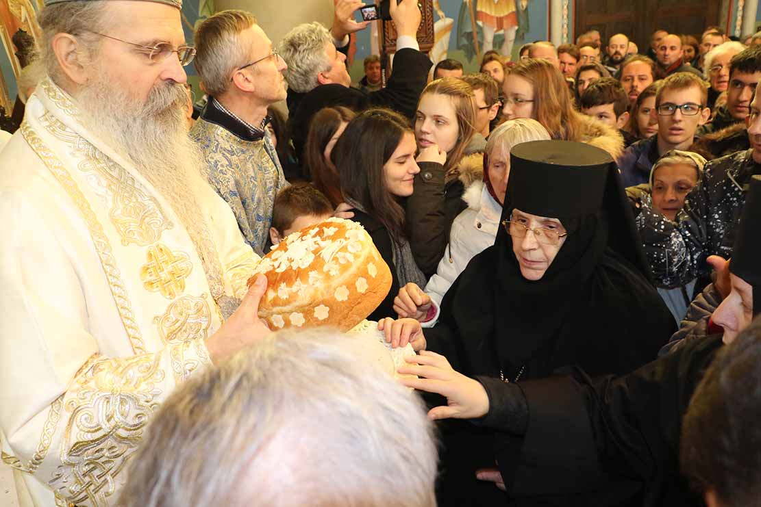 Поред многобројног верног народа, певнице под диригентским вођством Дивне Љубојевић, молитвено учешће су узели и ученици Математичке гимназије са својим вероучитељем Предрагом Ђукнићем чију школу је подигла велика ктиторка Персида Миленковић која је подигла и женски манастир Ваведења 1935. године.