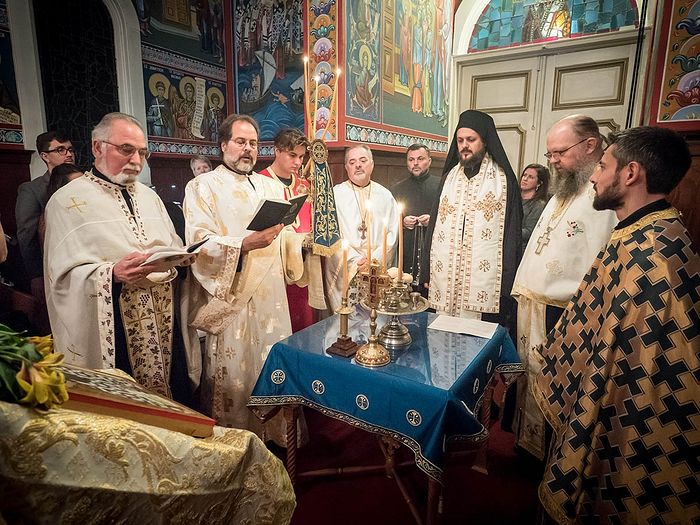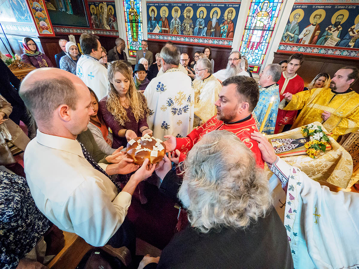 Да обележавање Дана оснивача није само сећање на прошлост, већ и поглед у будућност, да није само час историје, већ и непрекинуто заједништво са оснивачима и претходним поколењима наше Цркве у светој тајни Тела и Крви Христове у којој се непрестано сабирамо и сједињавамо и којом живимо, показала је и овогодишња света Божанска Литургија и сабрање око светога Путира. Оно је почело крштењем и миропомазањем две девојчице, Рускиње, и крунисано светим причешћем, а на радост и Светог Севастијана и руског владике Николаја (Зиорова) који су цркву освештали, као и свих чланова ове заједнице, јер се тако и прошлост и будућност ове парохије сабирају у Ономе који је Почетак и Крај. На литургији после Литургије, у црквеној сали коју краси велика застава са грбом краља Николе I Петровића и ове године послужен је бакалар по древном бокељском рецепту породице Милосовић.