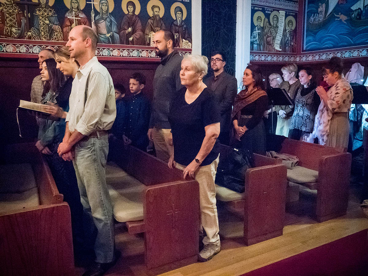 У четвртак, на празник, Господ нам је подарио још један диван јесењи дан. По благослову владике Максима, платински игуман Дамаскин, који је написао прво житије Светог Севастијана, служио је јутарњу службу, док су за певницом певали санфранциски прота Ђурица Гордић и лосанђелески прота Предраг Бојовић, а затим је началствовао и светом Литургијом.