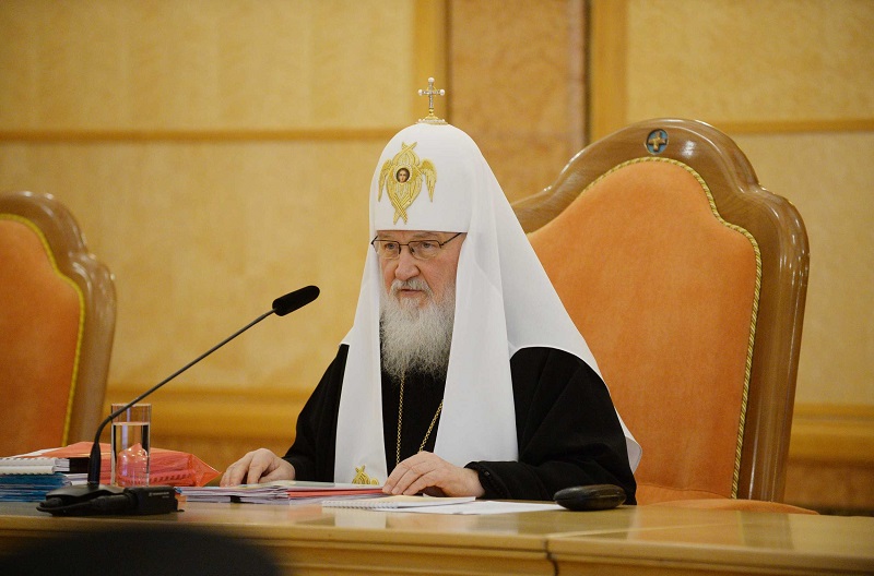 Открывая заседание, Предстоятель Русской Православной Церкви напомнил о проведении в ноябре-декабре сего года Освященного Архиерейского Собора, приуроченного к 100-летию Поместного Собора 1917-1918 гг. и избрания на Московскую Патриаршую кафедру святителя Тихона.