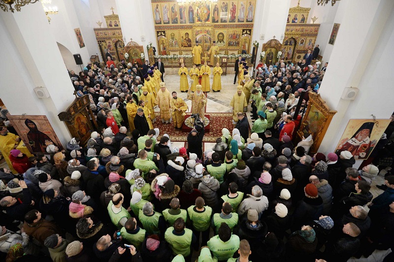 После сугубой ектении Предстоятель Русской Православной Церкви вознес молитву о мире на Украине.
