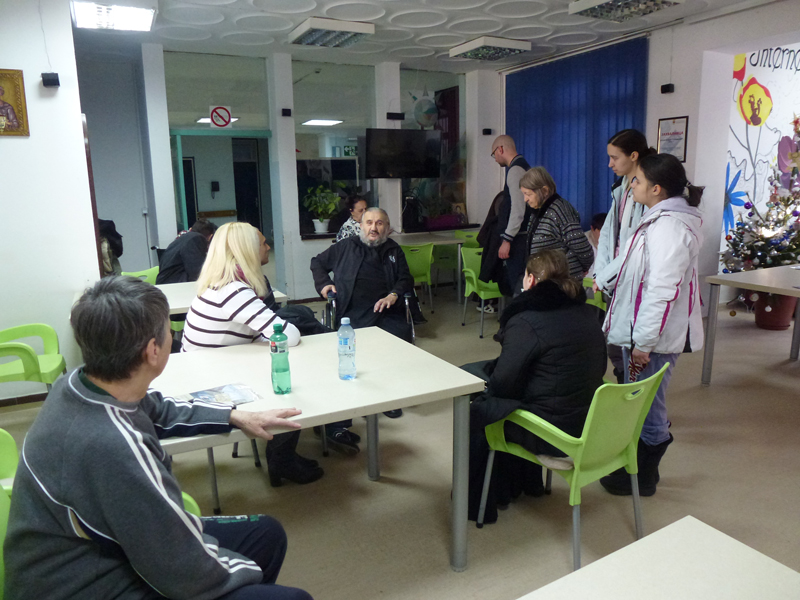 Деца су са волонтерима разговарала и где је било потребно споразмевала се уз помоћ другова. Показивали су своје ликовне радове и пожелела да одиграју партију кошарке. То смо оставили за други пут јер је напољу вејао снег. Уз помоћ волонтера Филипа отпевали смо заједно неколико песма међу којима су биле песме „Божић, Божић благи дан“, „Ој Бадњаче, бадњаче“, „Постоји једно царство“.