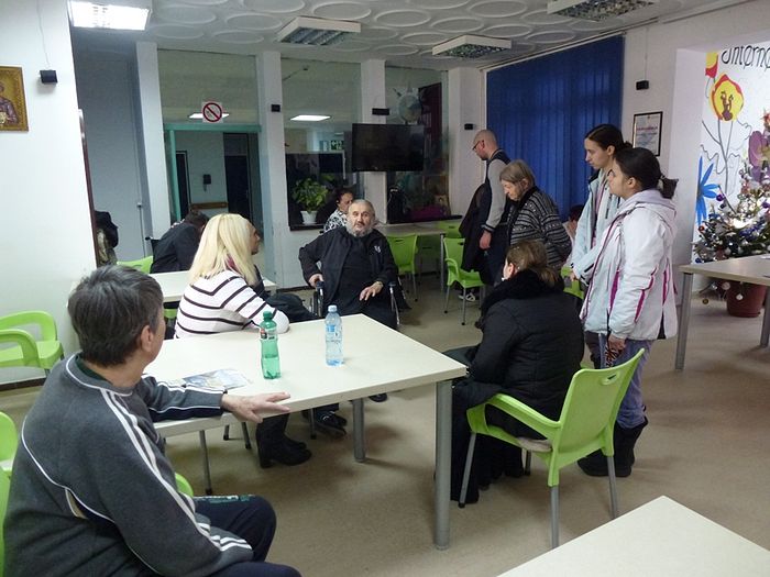 Волонтере је врло љубазно дочекала и примила гђа Вања Аничић, дефектолог и васпитач. У знак пажње и захвалности ВДС-у је поклонила икону Васкрсења Христовог рад корисника Дома. Дечаци су гостима рекли да је слава Дома Свети краљ Милутин и показали икону Светок Краља коју је урадио њихов друг и наменски столњак специјално за славу, њихов рад. Ове године је на слави Дома био отац Серафим из манастира Свете Тројице - Бијеле Воде са групом „Србче“. Деца слушају њихове песме и гостима су пустили да песму „Србче пева Богу“.