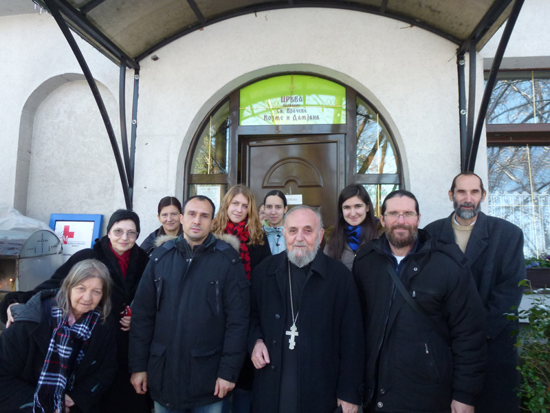 Прота Петар је нагласио: -Данас имамо част да су нам дошли људи из наше Српске Православне Цркве, из Верског добротворног старатељства, организације чији чланови обилазе болесне и сиромашне и труде се да нахране масу гладних људи по целом граду. Данас су дошли да обиђу болесну децу која се овде лече и да на неки начин ту духовну снагу дају деци, да она осете да нису сами. И не само то, него да осете да снага духовна може много да лечи. Захваљујем у име своје и у име свих вас. Нека Бог да, да њихова мисија буде још боља и племенитија а ми да се свему томе радујемо.