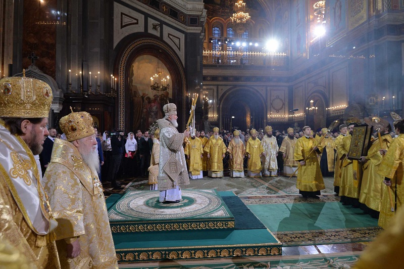 Богослужение транслировалось в прямом эфире на телеканалах «ТВ Центр» и «Союз». Трансляцию комментировал профессор Московской духовной академии А.К. Светозарский.