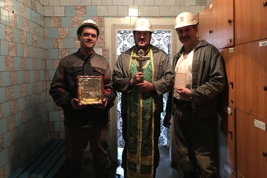 Там, в работающей лаве, священник отслужил краткий молебен, прочитал молитву о всех тружениках угольной промышленности и благословил горняков. После подъёма на поверхность отец Александр поблагодарил руководство шахты за возможность поддержать шахтёров, в поте лица добывающих пропитание для своих семей.
