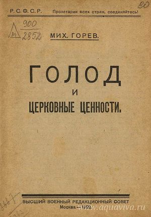 Один из соавторов «Декрета об отделении церкви от государства и школы от церкви» священник Михаил Галкин летом 1918 года отрекся от священнического сана. Он стал активным деятелем атеистической пропаганды и антирелигиозным писателем. Например, в 1922 году он выпустил брошюру «Голод и церковные ценности». — Но что-то пошло не так?