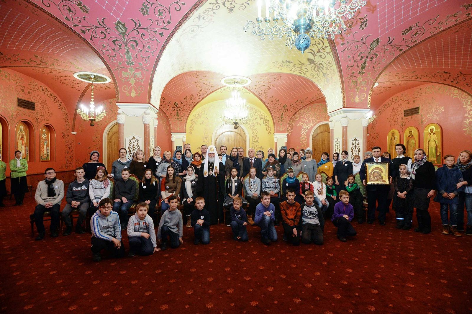 В благословение фонду «Защитник счастья» Предстоятель Русской Православной Церкви передал список Корсунской иконы Божией Матери.