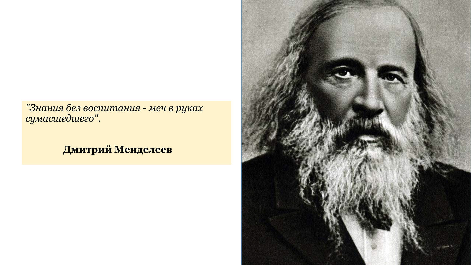 Образование, если рассмотреть это слово этимологически, – придание образа. И образа не какого-нибудь, а образа Божия. Это делается и с помощью знаний, и с помощью воспитания – то есть это комплексное действие, в котором нельзя выделить или отбросить какую-либо часть. Я могу подтвердить это словами известных философов: например, французский писатель и философ Мишель де Монтень писал: «Тому, кто не постиг науки добра, всякая иная наука приносит вред». Ему вторит Дмитрий Иванович Менделеев, наш великий ученый, говоря, что «знание без воспитания – это меч в руках сумасшедшего». А Михаил Васильевич Ломоносов просто писал: «Не сумма знаний, а правильный образ мышления и нравственное воспитание – вот цель обучения».