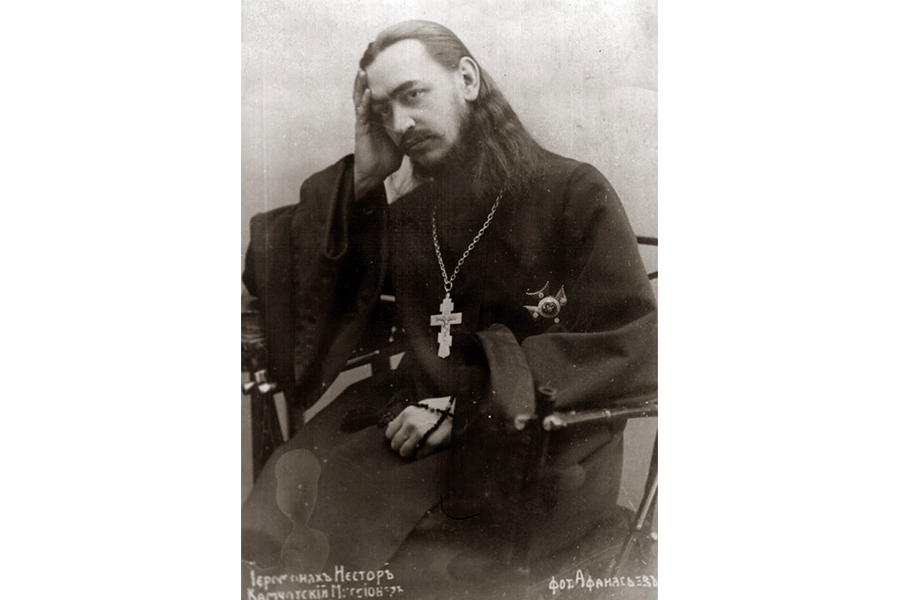 В 1913 г. отец Нестор был возведен в сан игумена. В 1914 г. игумен Нестор добровольно отправился на фронт во главе сформированного им санитарного поезда. Больше года он прослужил в лейб-гвардии Драгунском полку, был начальником санитарного отряда «Первая помощь под огнем врага». В 1917–1918 гг., уже будучи епископом Камчатским и Петропавловским, владыка Нестор участвовал в работе Поместного Собора Русской Православной Церкви. Первая сессия Собора, посвященная восстановлению Патриаршества в России и избранию Патриарха, проходила во время захвата власти большевиками. Во время переворота был осажден и обстреливался артиллерийским огнем Московский Кремль, и Собором была создана комиссия для описания повреждений, которым подвергся Кремль в результате обстрела. По поручению этой комиссии епископ Нестор подготовил ставшую известной брошюру «Расстрел Московского Кремля».