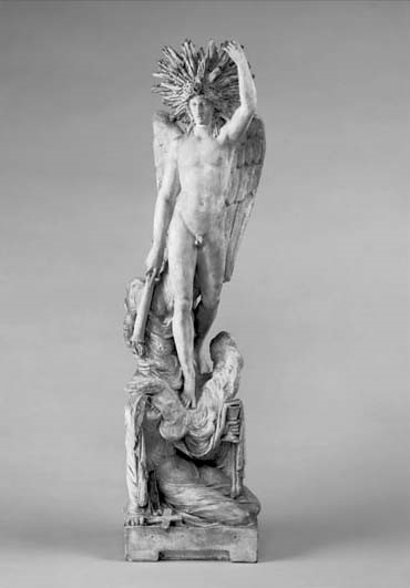 Одна из очень редких, сохранившихся до наших дней и не разрушенных в период Реставрации монархии во Франции статуй, созданных активными богоборцами в период революционного террора. Официально считается, что это изображение «Аполлона Либера, попирающего Невежество». Показанный как языческий бог, Аполлон Либер, имеющий эпитет Светоносец, о чём свидетельствует «факел пламени революции» в его руке, – не кто иной, как Люцифер. Образ «Невежества», переданный в виде попираемой ногами Люцифера монахини с крестом и чашей для Св. Причастия в руках, символизирует, по мнению французских революционеров, христианскую Церковь.