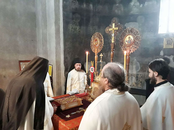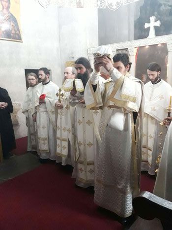 По уласку у храм служена је вечерња служба којом је началствовао протојереј-ставрофор Драган Ристић, архијерејски намјесник берански. У наставку вечерње служен је молебан Пресветој Богородици.