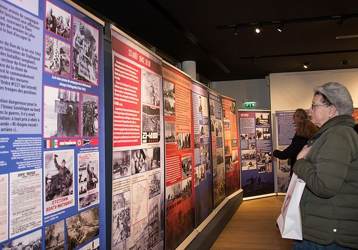 В этот вечер в выставочных залах центра начали работу две выставки: «Сталинград. Призыв к миру» и «Сталинград в судьбах Франции». Организаторами экспозиций, которые продлятся до 25 февраля, выступили администрации Волгоградской области и самого города-героя, музей-заповедник «Сталинградская битва», международный благотворительный фонд «Сталинградская битва» и Посольство Российской Федерации во Франции.