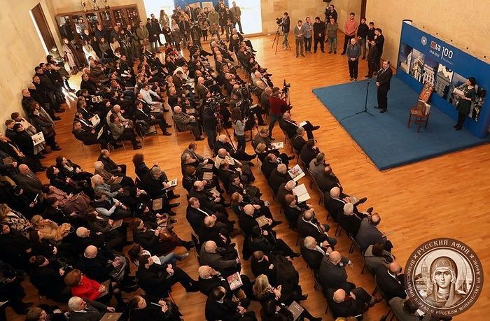 Книгу представил ее автор – генеральный секретарь Бизнес-совета «Евросоюз-Грузия», исполнительный директор по связям с общественностью ТГУ Звиад Чумбуридзе, бывший в 2003-2007 годах Чрезвычайным и Полномочным Послом Грузии в Греции и сопровождавший в 2004 г. Католикоса-Патриарха Илию II во время исторического визита на Святую Гору Афон.