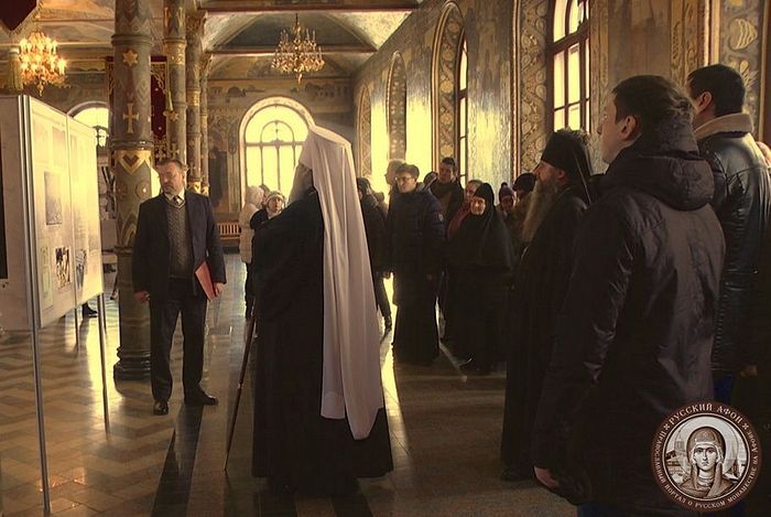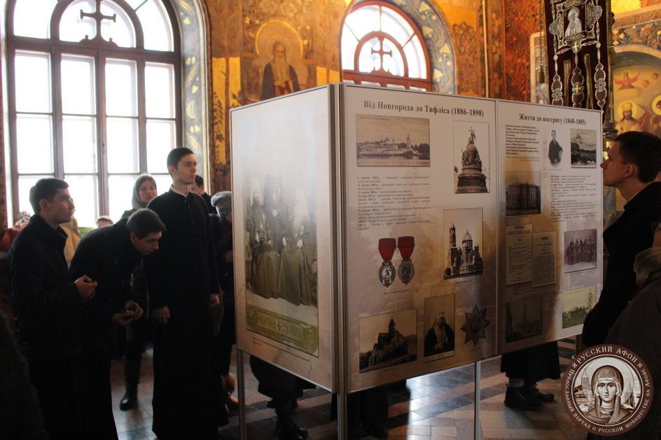 В рамках конференции в Трапезной палате храма прп. Антония и Феодосия Печерских на территории Киево-Печерской Лавры состоялось открытие выставки, посвященной 100-летию мученической смерти сщмч. Владимира (Богоявленского), митрополита Киевского и Галицкого. Стенды выставки разделены на несколько тем, один из которых посвящен связям сщмч. Владимира с Афоном.