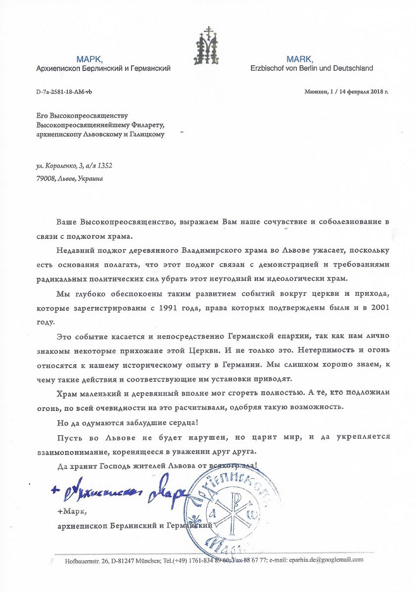 Это событие касается и непосредственно Германской епархии, так как нам лично знакомы некоторые прихожане этой Церкви. И не только это. Нетерпимость и огонь относятся к нашему историческому опыту в Германии. Мы слишком хорошо знаем, к чему такие действия и соответствующие им установки приводят.
