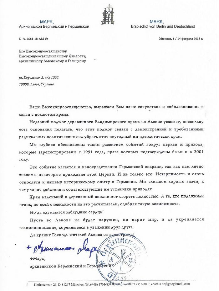 Недавний поджог деревянного Владимирского храма во Львове ужасает, поскольку есть основания полагать, что этот поджог связан с демонстрацией и требованиями радикальных политических сил убрать этот неугодный им идеологически храм.