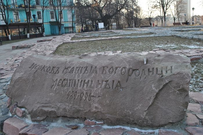 Письменные свидетельства и археологические исследования дают представление о том, каким был этот самый большой храм города. А о его размерах можно судить по каменным дорожкам, проложенным над фундаментом, на территории Государственного исторического музея Украины. От центра детинца шли улицы: одна вдоль нынешней Десятинной, вторая шла на Подол по Андреевскому спуску, а третья – к Градским (Софийским) воротам по Владимирской улице. Вокруг церкви располагались культовые сооружения и усадьбы бояр.