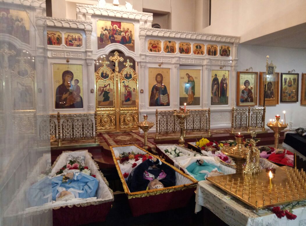Всех убиенных владыка благословил похоронить рядом с храмом. Сегодня, во вторник первой великопостной седмицы, были похороны. Чин погребения начался в 12 часов дня и длился часа полтора-два. Собралось проститься около 5000 человек. Люди плакали.