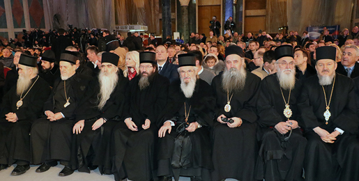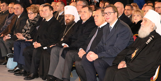 Председник Републике Србије г. Александар Вучић нагласио је да у храму Светог Саве треба да буде јак корен, отпоран на све олује, нашег пријатељства са Русијом. -Ова купола, која је изнад нас, вероватно је најбоље место за подсећање на светост неких веза, посебно Цркве и народа, Русије и Србије, народа који су потекли из истог племена, били као браћа у невољи, борили се заједно против мржње и освојили слободу за сваког од нас, нагласио је председник Вучић.