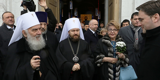 Преносећи благослов Његове Светости Патријарха московског и све Русије г. Кирила, присутнима се обратио Његово Високопреосвештенство Митрополит волоколамски г. Иларион, председник Одељења за спољне црквене везе Руске Православне Цркве, који је у српску престоницу стигао дан раније.