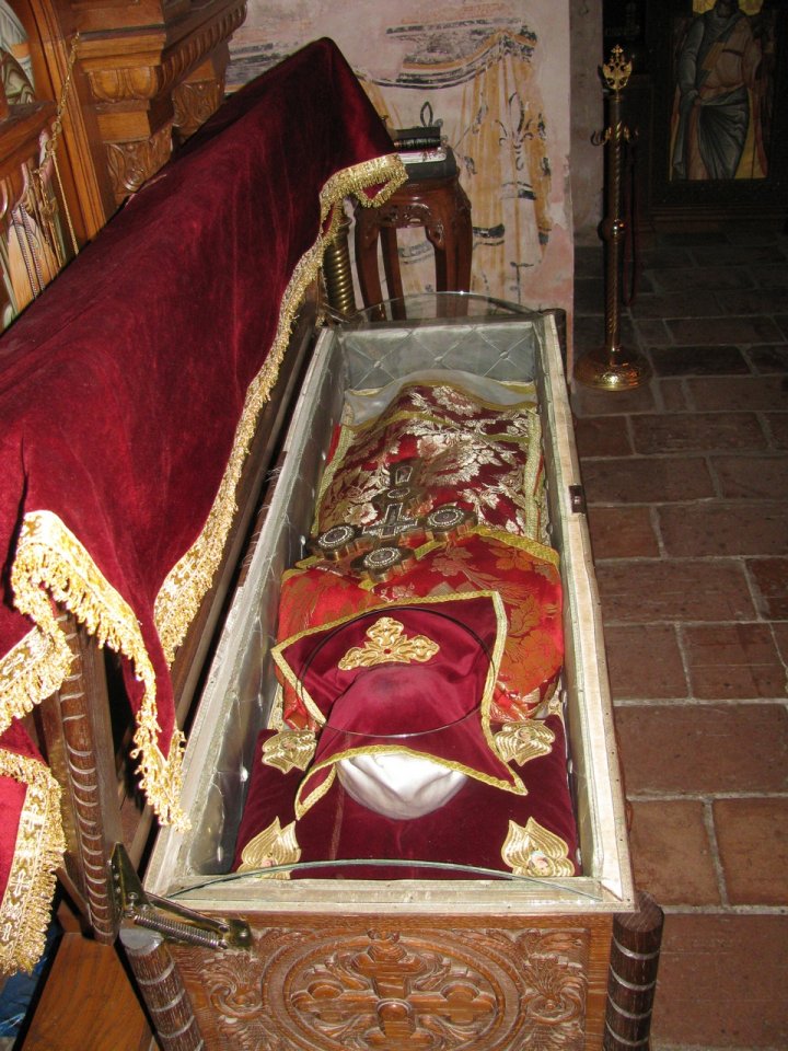 Из ове цркве, након много година, неки хришћани испуњени страхопоштовањем, тајно узму тело светог Теодора Тирона и пренесу га у Европу, до Угровлашке. Отуда их, опет, неки побожни властелин града Сибина Ердељског великим златом откупи и пренесе их кући својој, где их часно чуваше у ковчегу, током целог свог живота. После смрти овог властелина, његова удовица која је била неверна, запостави ковчег са телом. Неки неимари који дођоше после неког времена да овој жени обнове кровове над кућама у којима је живела, видеше човека сувог и непознатог у ковчегу. Благи Бог који о свему промишља, посла светог Теодора у сан једног од мајстора, дрводељи Радовану Ракићу, и представи му се. Од тада мајстор намишљаше како да узме тело мученика Христовог и, најзад, договори се са удовицом да плата за његов рад на обновљењу њене куће буде тело светог Теодора. Ковчег донесе у земљу Јованопољску и похрани их у манастиру Ходош, где почиваху двадесет и пет година. Многа чудеса се десише онима који приступаху светим моштима. О чудесима свеца слушаше народ мађарски и њихов клир наговараше војску да тајно и насилно отму мучениково свето тело. Монаси манастира Ходош прозреше њихово лукавство и дадоше се у бекство, носећи са собом ковчег. Дођоше у Срем и настанише се у манастиру Ново Хопово. Од хоповске братије буду радо примљени, а ковчег са светим телом беше унесен у цркву са појањем и литијом, стављен пред престолним иконама, где више година у миру и покоју почиваше.