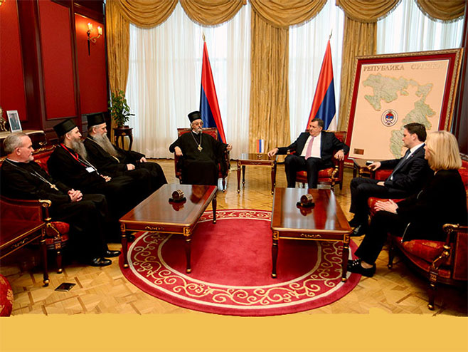 Предсједник Републике Српске Милорад Додик одржао је данас састанак на маргинама Првог форума дијаспоре са представницима Српске православне цркве.