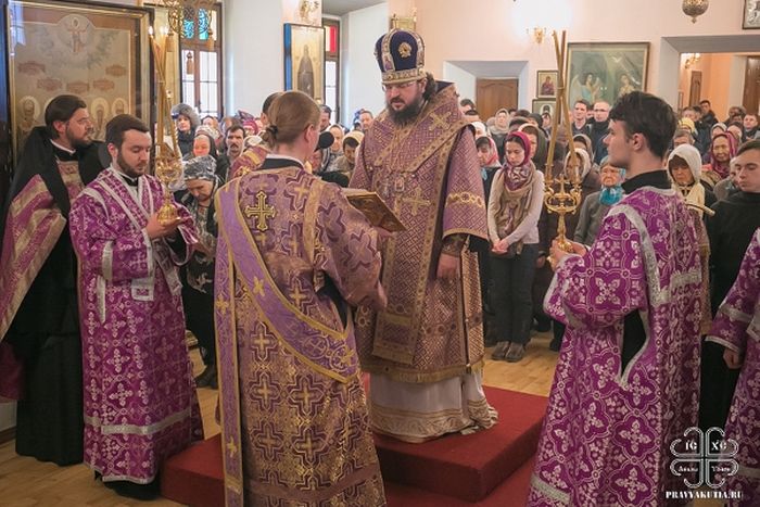 В тот же день архиепископ Роман возглавил в Преображенском соборе чин Торжества Православия и молебен по случаю 25-летия восстановления Якутской епархии.