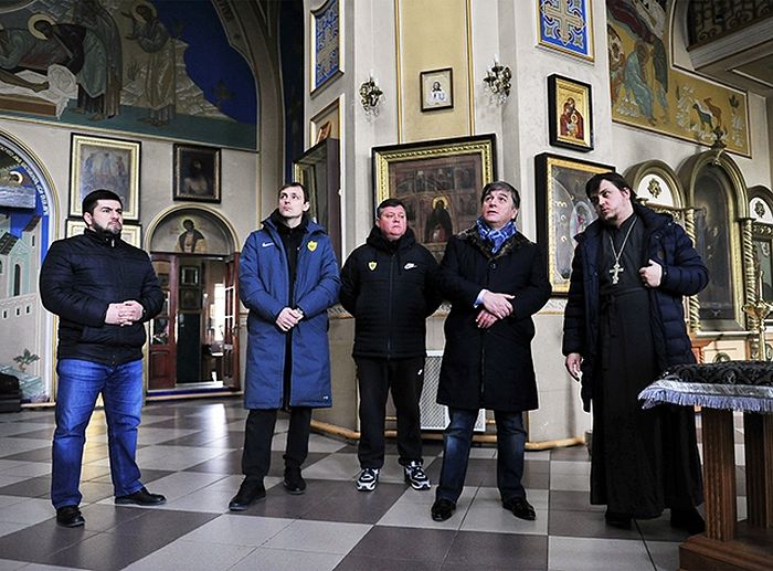 Сегодня в Соборe Успения Пресвятой Богородицы состоялась встреча руководства ФК «Анжи» с настоятелем Свято-Георгиевского храма Кизляра отцом Павлом Калинкиным, на которой президент клуба Осман Кадиев передал денежные средства в размере 500 тысяч рублей.