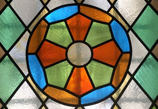 Витраж в приделе в честь Рождества Иоанна Крестителя собора Владимирской иконы Божией Матери. Сретенский монастырь 19 февраля / 4 марта 2018 г. Неделя 2-я Великого поста. Память святителя Григория Паламы, архиепископа Солунского. Сретенский монастырь. Божественная литургия. Хор Сретенского монастыря.