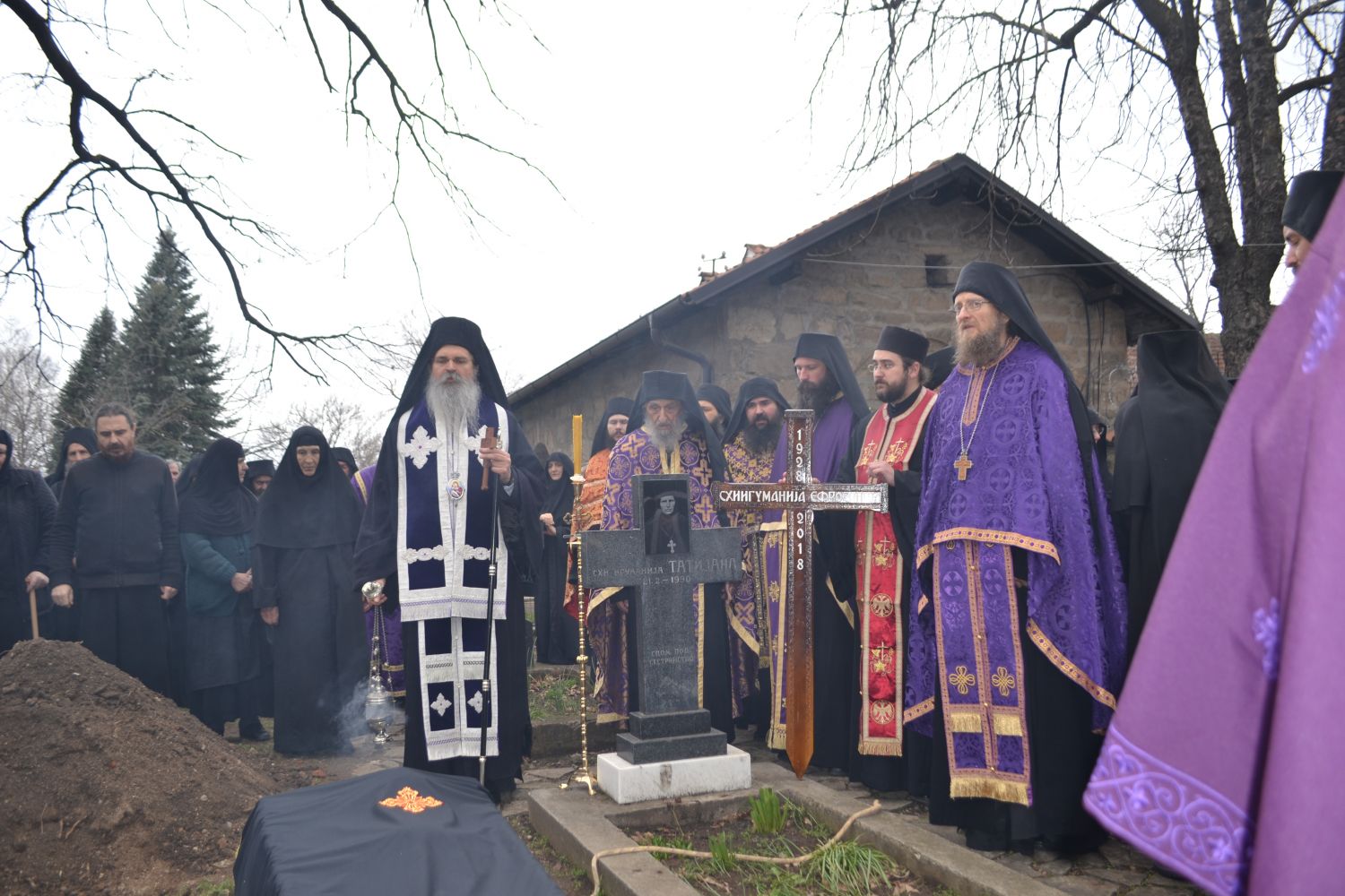Епископ Теодосије је одржао посебно надахнуту беседу у којој је подсетио присутне на богољубиви подвиг и живот мати Ефросиније која је својим трудом, љубављу, благошћу и монашким смирењем обележила време у коме живимо. Мати Ефросинију су са посебном љубављу испратиле и њене монахиње, које су у њој препознале и годинама гледале истинску духовну мајку и пример молитвеног живота.