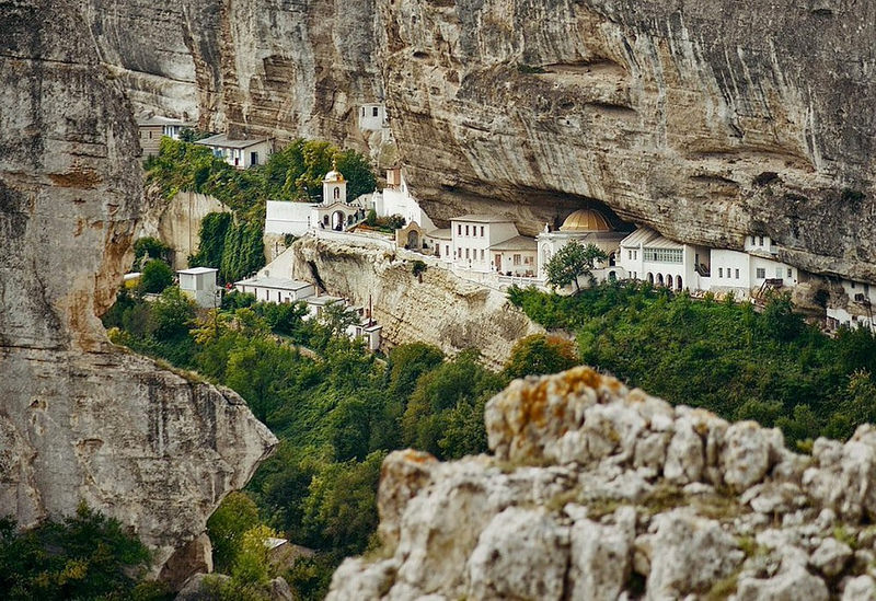 Кажется, история тут в самих скалах, сжатое в камень время. Огромная стена, в которой открываются пещеры, в которых жили монахи, поражает. Помещения, вырубленные в скале, балкончики и окна. Напротив, вдалеке через долину реки — тоже скалы, а дальше открывается Инкерманская бухта, где река Черная впадает в море. Это место завораживает своим масштабом и красотой.