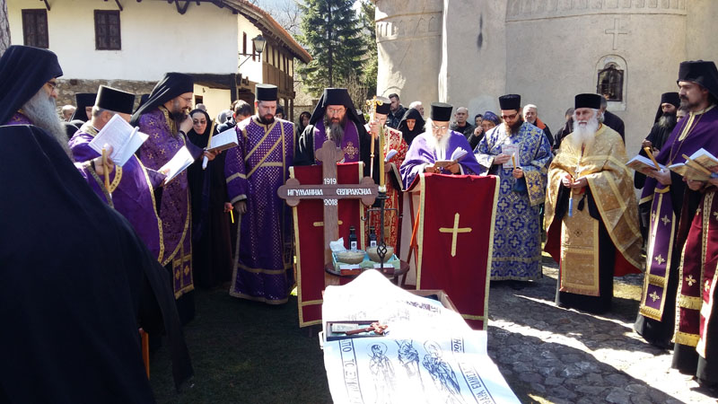 Епископ Јустин се обратио присутнима и пренео велике жеље Његове Светости Патријарха српског г. Иринеја да дође на опело игуманији Евпраксији, али пошто је због великих и неодложних обавеза био спречен, послао је молитвене поздраве и свој свети благослов сабраном свештенству, монаштву и народу.