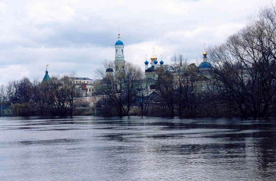 И, миновав Козельск, подъехав к мосту через приток Оки Жиздру, рифмующуюся с жизнью, мы молча вышли из автомобиля. Слева, на горизонте, над лесом, под меняющимися серо-чёрными облаками, были видны монастырские купола, освещённые пробившимся солнцем.