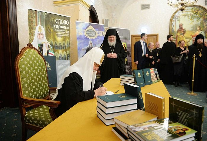 Затем Предстоятель Русской Православной Церкви подписал экземпляры книг для почетных гостей.