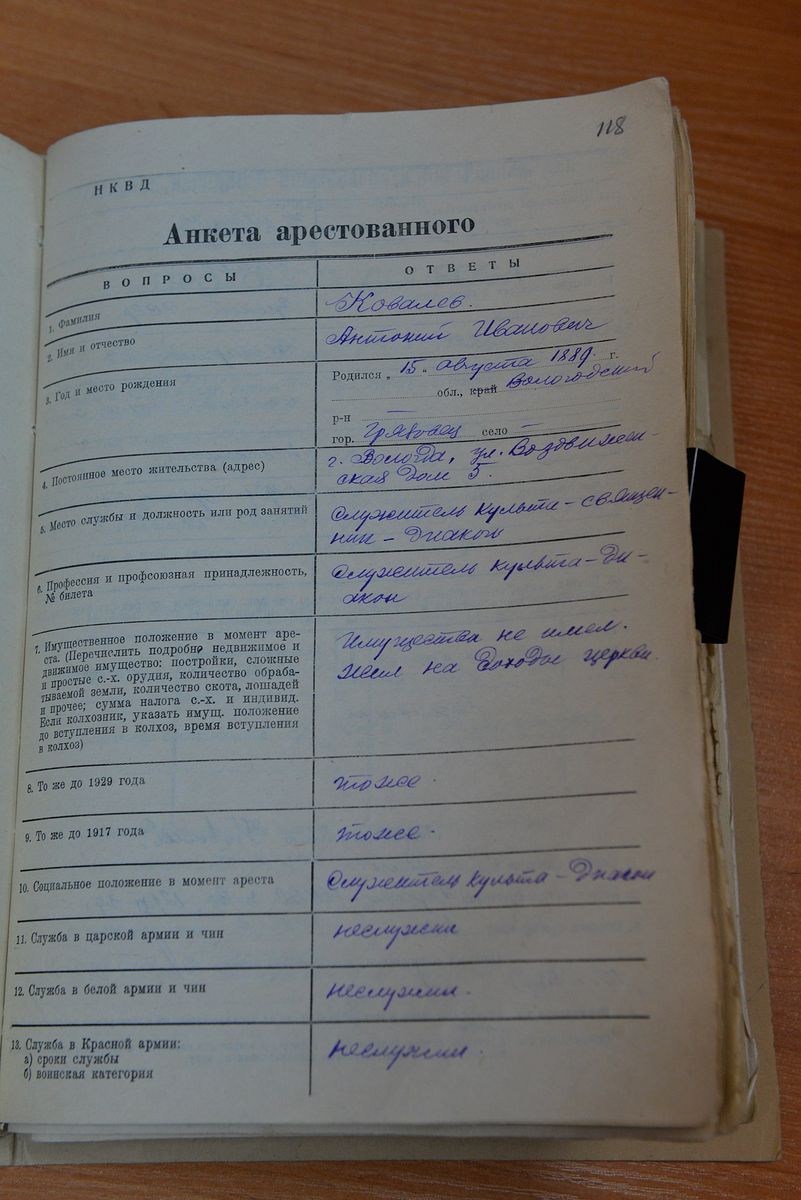 Следовательно, как выяснилось, иеродиакон Антоний, пережив в течение короткого времени разорение святой обители на своей малой родине, затем осквернение Свято-Духова монастыря, закрытие Владимирского храма, стал служить в одной из двух оставшихся в живых церквей Вологды, затем был первый арест и годы заключения в Сиблаге, а потом – служение в Лазаревской церкви. В 1937 году, во время очередной волны гонений, он был снова арестован. Таким образом, поиски привели меня в архив УФСБ Вологодской области, где сохранилось уголовное дело 1937 года по многим священникам Лазаревской церкви Вологды.