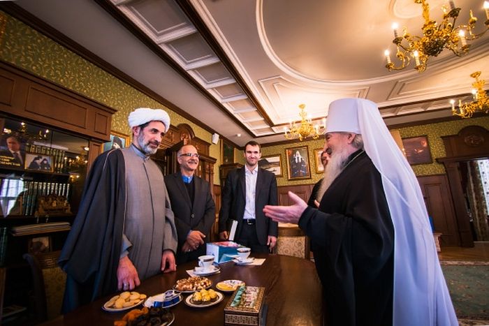 «Мы много работаем с муфтием Татарстана Камилем хазратом [Самигуллиным], с которым у нас сложились дружеские, доверительные отношения, — подчеркнул митрополит Феофан. — Мы проводим встречи с молодежью: я встречаюсь со студентами мусульманской академии, а Камиль хазрат — с православными семинаристами». Владыка митрополит сообщил о реализации совместных социальных программ, среди которых проекты, направленные на борьбу с абортами, наркоманией и алкоголизмом.