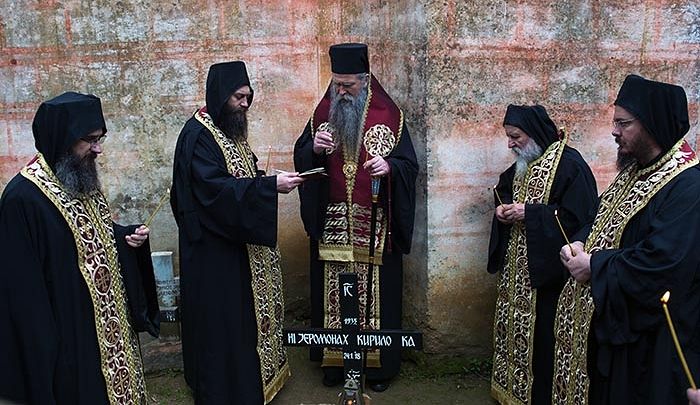 Јеромонах Кирило Хиландарац упокојио се 6. фебруара (24. јануара по јулијанском календару) у Светој царској српској лаври Хиландару. Замонашио се 1953. у манастиру Витовница. У чин јерођакона рукоположен је на Пасху 1961. у манастиру Светог Саве у Либертвилу у САД. У чин презвитера рукоположен је 1963, такође у САД. Сабрат манастира Хиландара постао је 1987. Од 31. децембра 1997. па до упокојења, обављаo jе дужност члана Свештеног сабора стараца манастира Хиландара. У Хиландару је примио и велику схиму.