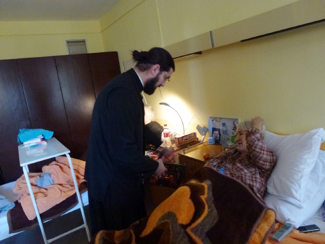 Волонтери Милосрдне секције и ђакон Бранислав су заједно са гђом Марином обишли кориснике Дома везане за постељу. Топла реч, пружена рука и присуство свештенослужитеља су били знак мале, али искрене пажње према људима који су због старости или болести сад везани за постељу. Био је и један сусрет пун радости кад су се после дужег времена видели стари знанци, Василије Ковачевић из ВДС-а и господин Милан који је годинама као волонтер свесрдно помагао у ВДС-у. Сећамо се како је вредно радио кад су се сређивале просторије ВДС-а и припремале за рад Црквене кухиње. Милан се у животу трудио да испуни речи Апостола:„А добро чинити да нам не досади...“ (Гал. 6,9). Сад кад је онемоћао ужива пуну бригу и негу у овом Дому и свима може бити пример да Господ никад не оставља оне „који Га се боје“ и испуњавају Његове свете заповести.