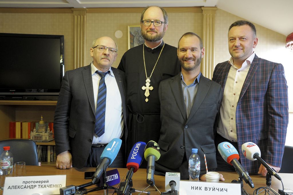 Ник Вуйчич отметил, что хорошо знает и любит Россию и ее граждан: «Мне 35 лет, и я верю, что у меня впереди будет еще много возможностей побывать в России» Протоиерей Александр Ткаченко, председатель Комиссии по благотворительности ОПРФ, основатель и руководитель Детского хосписа, принимавший Ника Вуйчича в своем учреждении, поблагодарил его и сказал: «Ваш визит сейчас очень важен для разных стран, потому что Вы буквально являетесь послом Мира и послом Любви. Разговор с Вами – это настоящая народная дипломатия, которая играет особую роль в дни непростых отношений между разными странами».