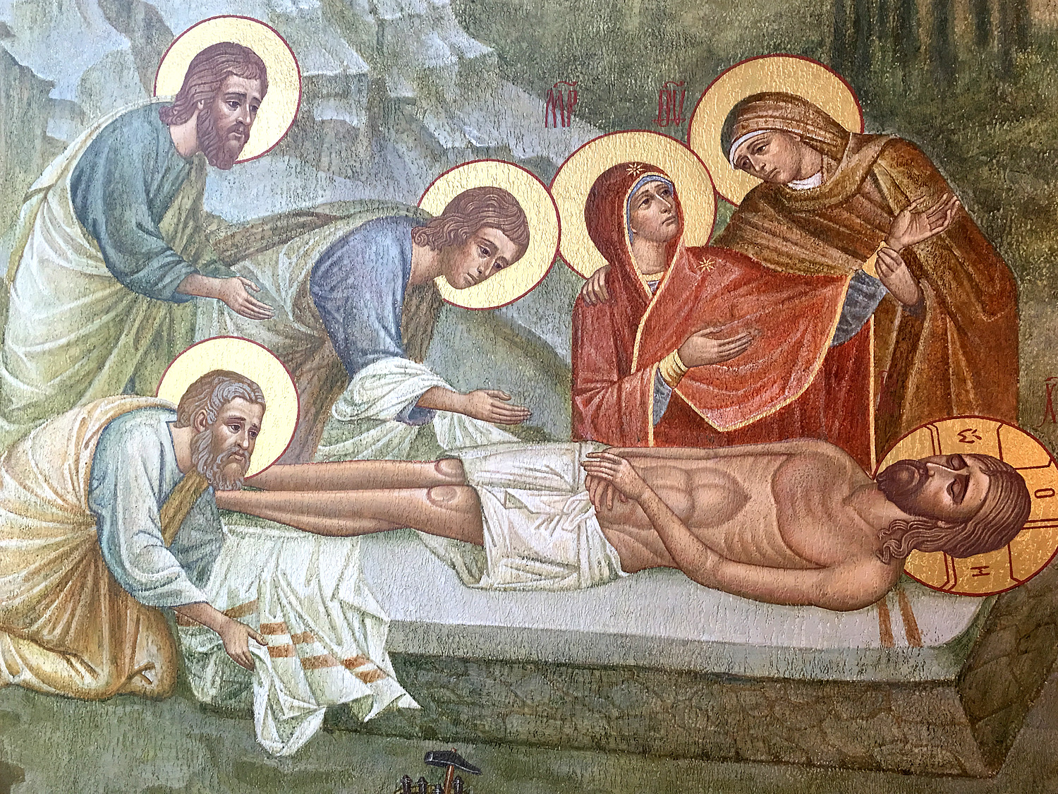 Положение во Гроб Господа нашего Иисуса Христа. Фреска храма Воскресения Христова и Новомучеников и Исповедников Церкви Русской. Сретенский монастырь 24 марта / 6 апреля 2018 г. Пятница Страстной седмицы Великого поста. Сретенский монастырь. Вечерня, канон на плач Пресвятой Богородицы. Хор Сретенского монастыря.