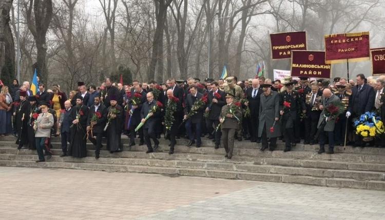 Затем на площади 10-го апреля, у памятника в честь освободителей Одессы, также прошли торжественные возложения цветов в память тех, кто очистил город от захватчиков.