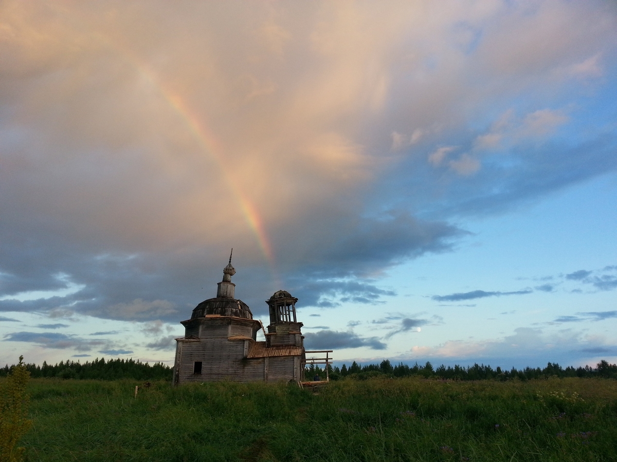 Мы с другом совершенно невоцерковленными были, для нас все это вообще было в новинку — утреннее правило, вечернее… И мы вместе с местными жителями два дня готовили Воскресенский храм в селе Ракула Холмогорского района Архангельской области к Литургии — первой за 80 лет. Интересно еще и то, что деревня находится на одном берегу Северной Двины, а храм — на другом. И не так просто еще переправиться: надо найти лодки, со всеми договориться… С утра пораньше половина села переместилась на другой берег. И вот совершается Литургия, вот первая твоя осознанная исповедь, Причастие, и ты выходишь из храма, а перед тобой река в разливе, храм середины XVIII века, колокольня метров тридцать высотою… Это совершенно невероятное впечатление.