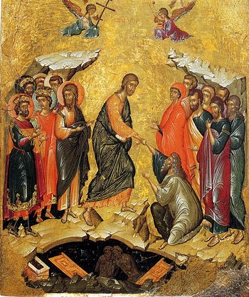 Дакле, около нема никаквим мртваца. Постоји лепота врта и жена које траже тело Новог Адама. У овим условима, питање Анђела добија посебан смисао. „Што тражите Живог међу мртвима?“