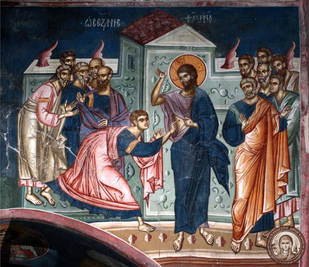 В первое воскресенье после Пасхи, Фомину неделю, Антипасху, Церковь вспоминает явление воскресшего Господа Иисуса Христаапостолам и уверение апостола Фомы. Господь не отверг сомнений Фомы, идет ему навстречу, показывает ему Свои раны, предлагая осязать их. При этом Господь открывает высший путь к вере: “Блаженны не видевшие и уверовавшие…”