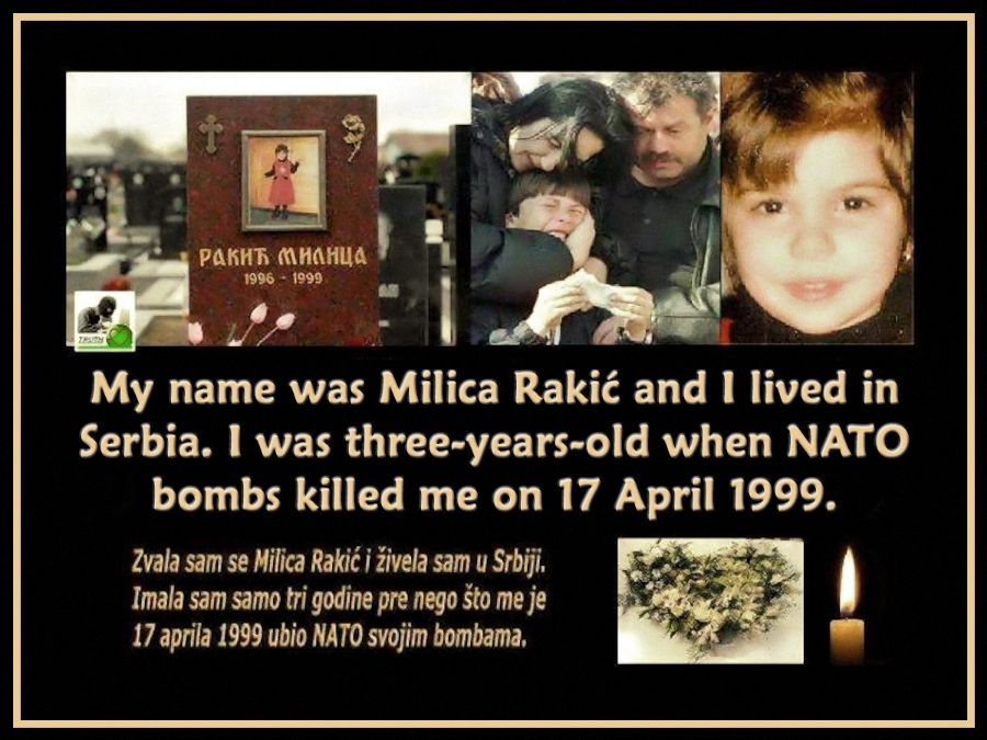 Милица Ракић погинула је 17. априла 1999. године. Њен отац Жарко сведочио је да је сцена удара била стравична. Купатило је било пуно гелера, који су се толиком силином зарили у кућу да су пробили и зид. „Изгубили смо је“, прве су речи које је изустио када ју је крваву узео у руке. Имала је велику рану на препони кроз коју је искрварила, али и друге тешке повреде. Несрећни отац Жарко однео ју је те ноћи у оближну амбуланту Хитне помоћи. Касније је породица преко телевизије сазнала да је Милица изгубила живот.