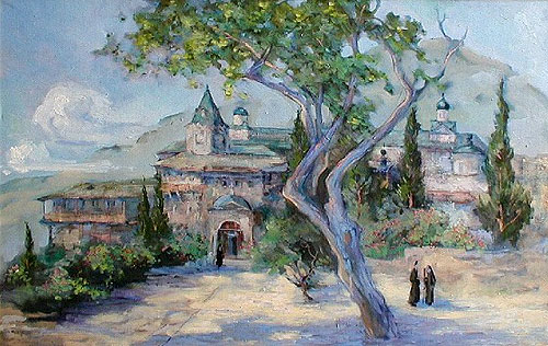 Была суббота. Монахи готовились к вечерней службе. Те, кому предписано нести послушание вне монастыря, тоже поспешали в обитель. Как здесь говорят, они «спускались» в монастырь. Это потому, что сам монастырь на берегу моря, а тот, кто живет в глубине афонского полуострова, по сути живет в горах. Так и отец Никола оставил свой «пост» и спустился в монастырь, где у него, как я сказал, есть своя келейка. Она-то и была нашей целью.